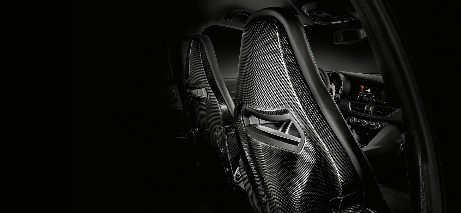Oglekļa šķiedras jumts un apdares elementi piešķir Giulia Quadrifoglio sportisku dizainu.
